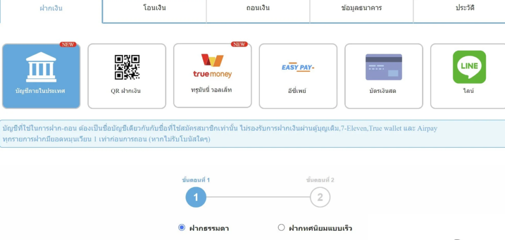 - ตรวจสอบข้อมูลส่วนบุคคล: ก่อนฝากเงิน ตรวจสอบให้แน่ใจว่าคุณได้ให้ข้อมูลส่วนบุคคลที่ถูกต้องและครบถ้วน ข้อมูลที่ไม่ถูกต้องอาจนำไปสู่ปัญหาระหว่างการทำธุรกรรมได้
